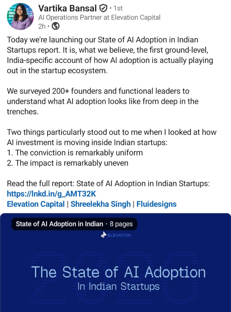 We surveyed 200+ startup leaders across early-stage Indian startups to understand how AI adoption is actually playing out on the ground. What our data reveals is an ecosystem firmly past the point of no return on AI.
